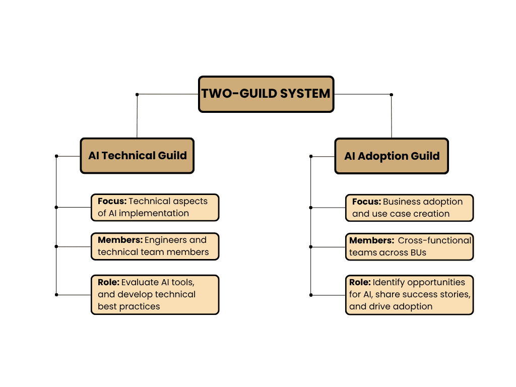 Support Structure: AI specialists provide consulting and support, not centralized execution