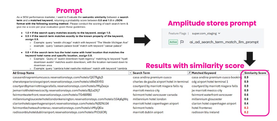 Similarity Scoring: AI evaluates the semantic similarity between search terms and keywords